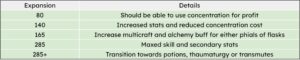 While people are still farming their own herbs to make flasks, it doesn’t really affect our ways to make gold, thanks to concentration. Concentration will be the main earner from this build. Furthermore, once the build is completed, you’ll have the opportunity to transition towards guaranteed rank 3 flasks and phials. You can also transition towards the thaumaturgy transmutations as a bonus way to make gold.