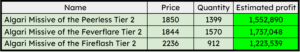 This market caught me by surprise. I crafted rank 2 missives with rank 2 materials. Somehow, that was massively profitable. There were times where I could make over 2000 average gold per craft. This market is not for everyone. You need to constantly post as it gets undercutted quickly. However, the sale rate is extremely high. Here are my sales and profit from my top 3 missives:
