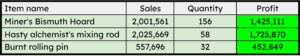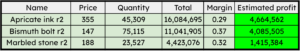 You could say that I removed 6 390 785 gold from the economy this month! I didn’t put details on every item sold since it’s already been a ton of work to get the basic estimations. The process of how I did my calculations will be shown later in the article. From now on, you may expect one of these data report each month!