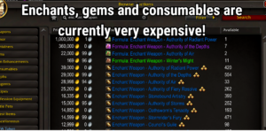 The first few embellishments that caught my eye were the engineering ones. The profit margins were immense and the sale rate was medium. Engineering was good but nothing compared to jewelcrafting. This is where I found my number 1 item of the whole month. Technically, some items made more profit. This embellishment was simply the highest gold per craft.
