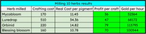 In the example below, I can see that my “real crafting cost” for shadow ink is 77 gold.