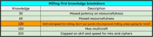 Depending on your priorities, you might want to go on 2 different path. If you want to go for milling first, use the first build. If you want to go for the inks and ciphers build, use the second. At the end, you’ll get both builds completed regardless of where you started. Keep in mind that if you want to craft rank 1 and rank 2 reagents (which I find ideal), you’ll need to skip putting points into improved milling.