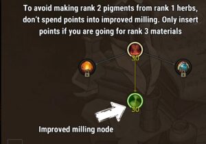 It’s important not to mill rank 1 herbs to get rank 2 pigments. If you do that, you’ll obtain less pigments when milling. This is why the knowledge path is altered so that you keep getting rank 1 pigments from rank 1 herbs. However, if you want to go for the rank 3 build, you won’t be able to obtain rank 1 pigments anymore.